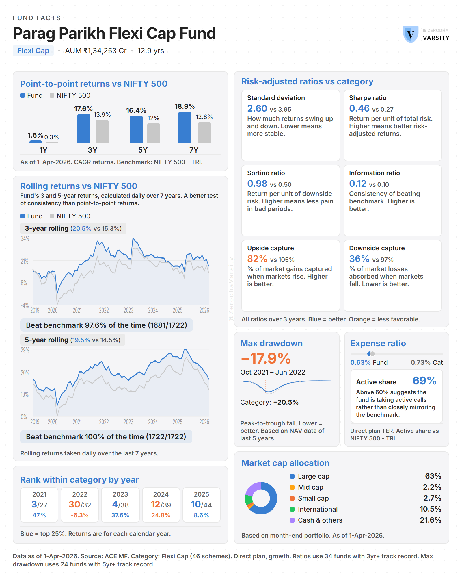 That is exactly why we thought of starting a weekly infographic series called ‘Know Your Fund’ that breaks down the important things to consider. It combines all the important metrics, such as returns, risk ratios, consistency, costs, and portfolio characteristics, along with category comparisons, into a single visual for a quick look.