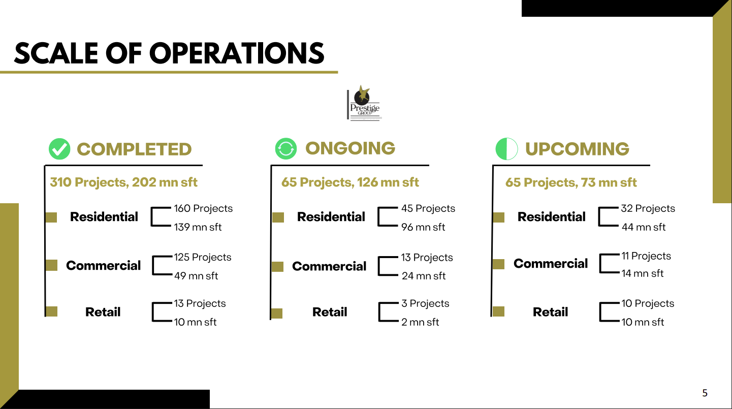 - Completed projects – Mostly found in investor presentations and company websites, look for how many projects the developer has completed, how many years they have been in the business, and what their execution capabilities are. Look for cues on how they have grown in the size or location of their projects, or what kind of real estate projects they have been more successful with.