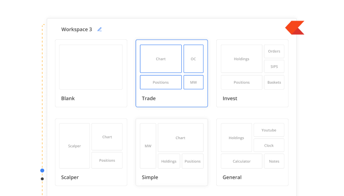 For example, you might create one workspace focused on intraday trading, with charts taking up most of the screen, another for options trading, with the option chain at the centre, and a separate workspace for tracking long-term investments and alerts.
