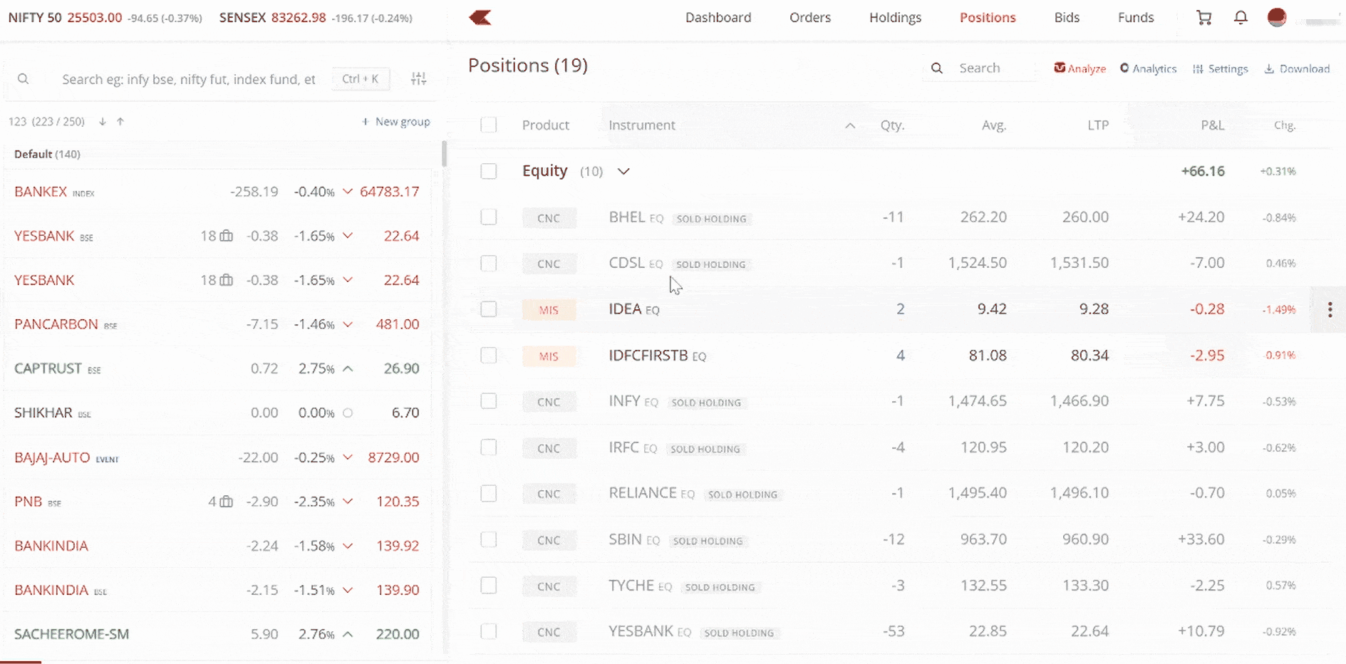 Inside HOLDINGS Tab, currently there is no option to make my customized groups – e.g., I want all METAT stocks to seen one below other and P&L from them. Similarly all BANCKING stocks. On similar lines goes with grouping REITS and INVITS