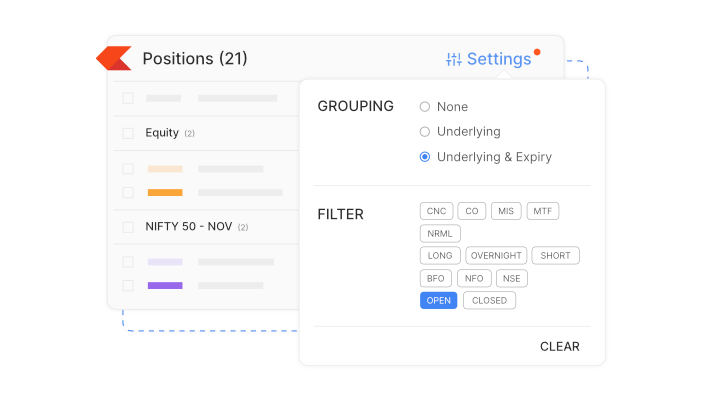 want a grouping view that can be dynamically customized. For example, if I’m running two different strategies but both involve taking positions in the same Nifty option strike, I should be able to manually group or split the positions to see the combined P&L of the overall strategy.